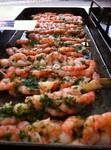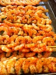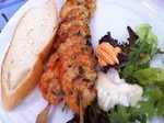 - Garnelen-Spieß gegrillt mit Knoblauch- und Cocktaildressing, serviert mit Baguette
