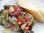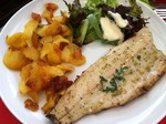 - Victoriasee-Barschfilet „Madagaskar“ handmariniert mit Kokosnuss, Curry und Gemüsestücken, serviert mit Baguette und Knoblauch- und Cocktaildressing