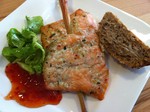 - Lachsfilet „Zitronengras-Spieß“ mariniert in Ingwer, Paprika und Zwiebelstückchen