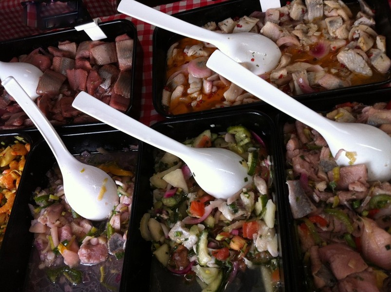 - Lachs-Jakobsmuschel-Spieß mit buntem Pfeffer, Fenchel-Zitronen Marinade